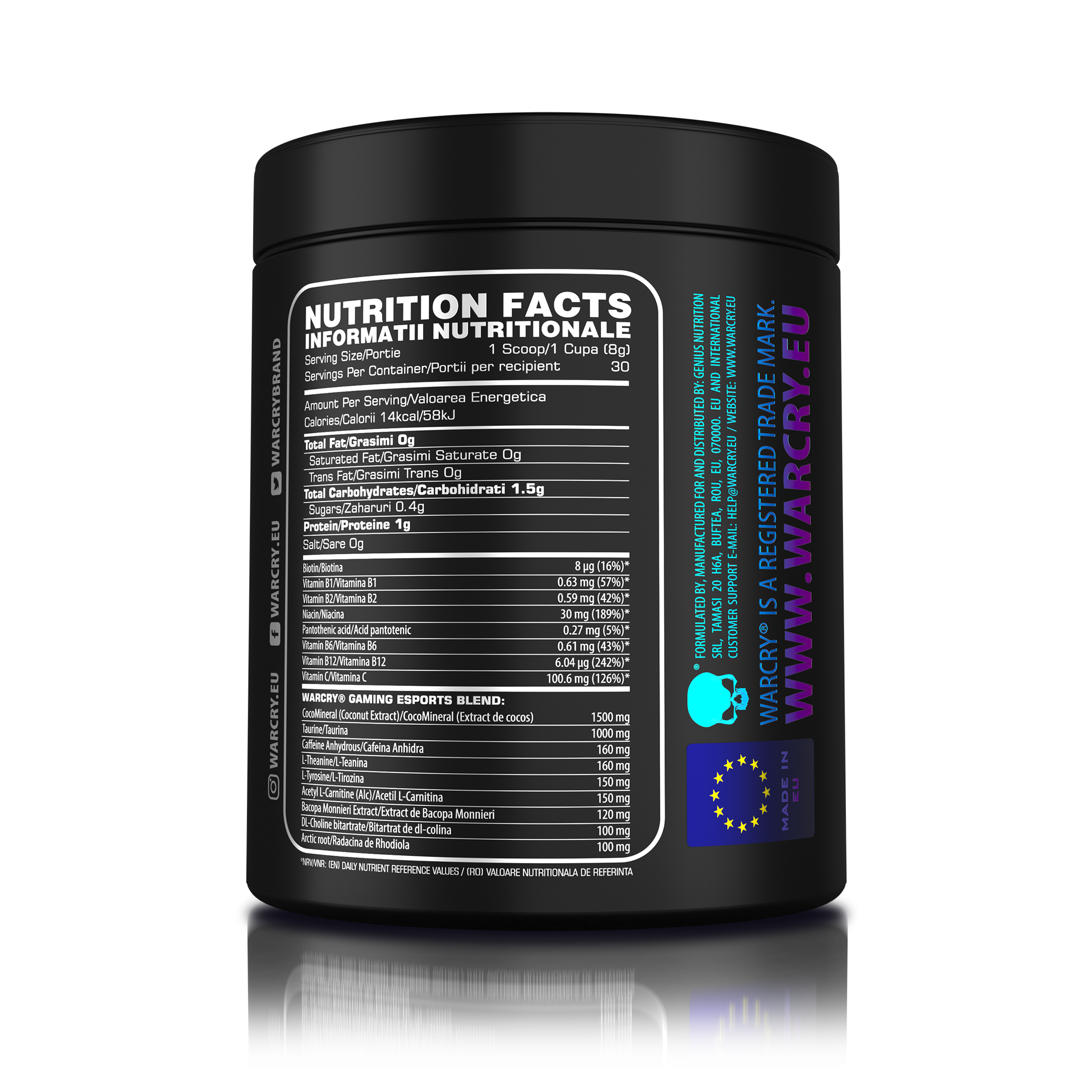 With just 14 calories per serving and no added sugar, WARCRY® GAMING is the undisputed choice for those seeking peak performance without compromise. The 8 completely distinctive flavors add a pleasant note to your gaming experience. Each serving contains 160 mg of caffeine, helping to maintain attention and focus throughout your gaming session. Discover WARCRY® GAMING, the ultimate partner for those aspiring to excellence.